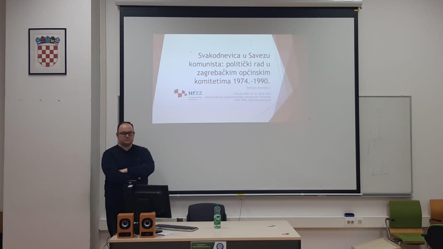 Tomislav Branđolica gostovao je 30. ožujka 2022. na Fakultetu hrvatskih studija Sveučilišta u Zagrebu gdje je na diplomskom studiju povijesti održao predavanje pod naslovom Svakodnevica u Savezu komunista: politički rad u zagrebačkim općinskim komitetima 1974.-1990. Kolega Branđolica se kao istraživač projektu priključio 2021. te preuzeo temu sigurnosti, općenarodne obrane i društvene samozaštite na području Osijeka i Zagreba.