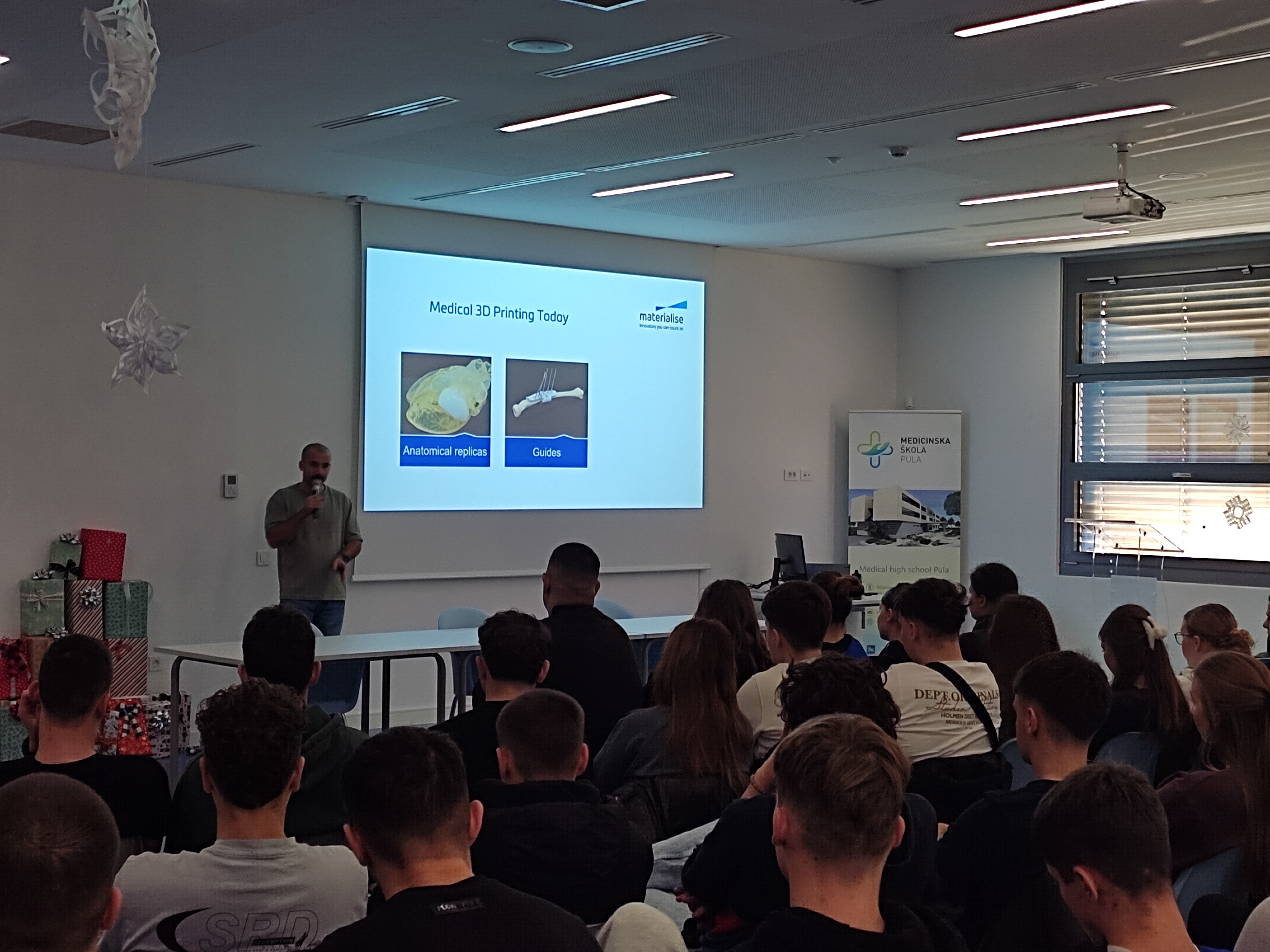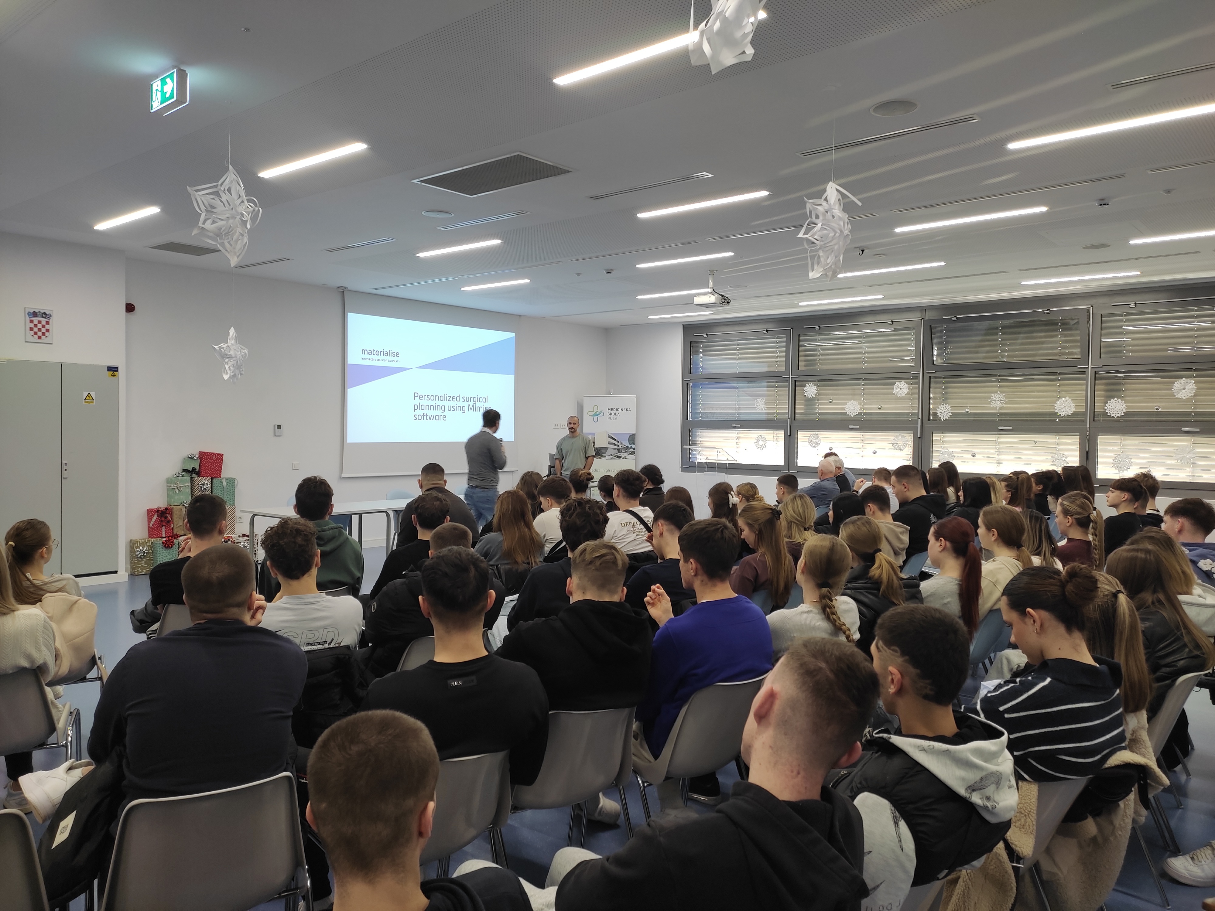 On the second day, dissemination and impact activities were conducted at the Pula Medical School, including a BIOMEDIX workshop for students and a demonstration of the MIMICS software in collaboration with the partner Materialise. Through the workshop, students had the opportunity to observe how a part of the human skull can be fully reconstructed within approximately ten minutes using two software tools. Participants were actively engaged in a question-and-answer session with students, followed by a final working meeting and the conclusion of the remaining project activities.