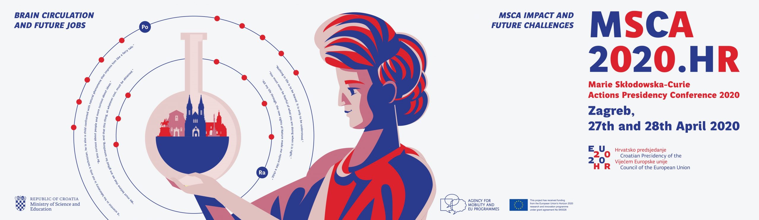 Predsjedavajuća konferencija „Marie Sklodowska – Curie Actions: Brain circulation and future jobs“ održat će se 19. lipnja 2020. u video formatu. Nakon što je konferencija, koja je trebala biti održana u Zagrebu 27. i 28. travnja 2020. godine, odgođena zbog situacije nastale razvijanjem i širenjem korona virusa (COVID-19), Ministarstvo znanosti i obrazovanja, u suradnji s Agencijom za mobilnost i programe EU, odlučili su prilagoditi koncept konferencije na način da će biti digitalno održana.